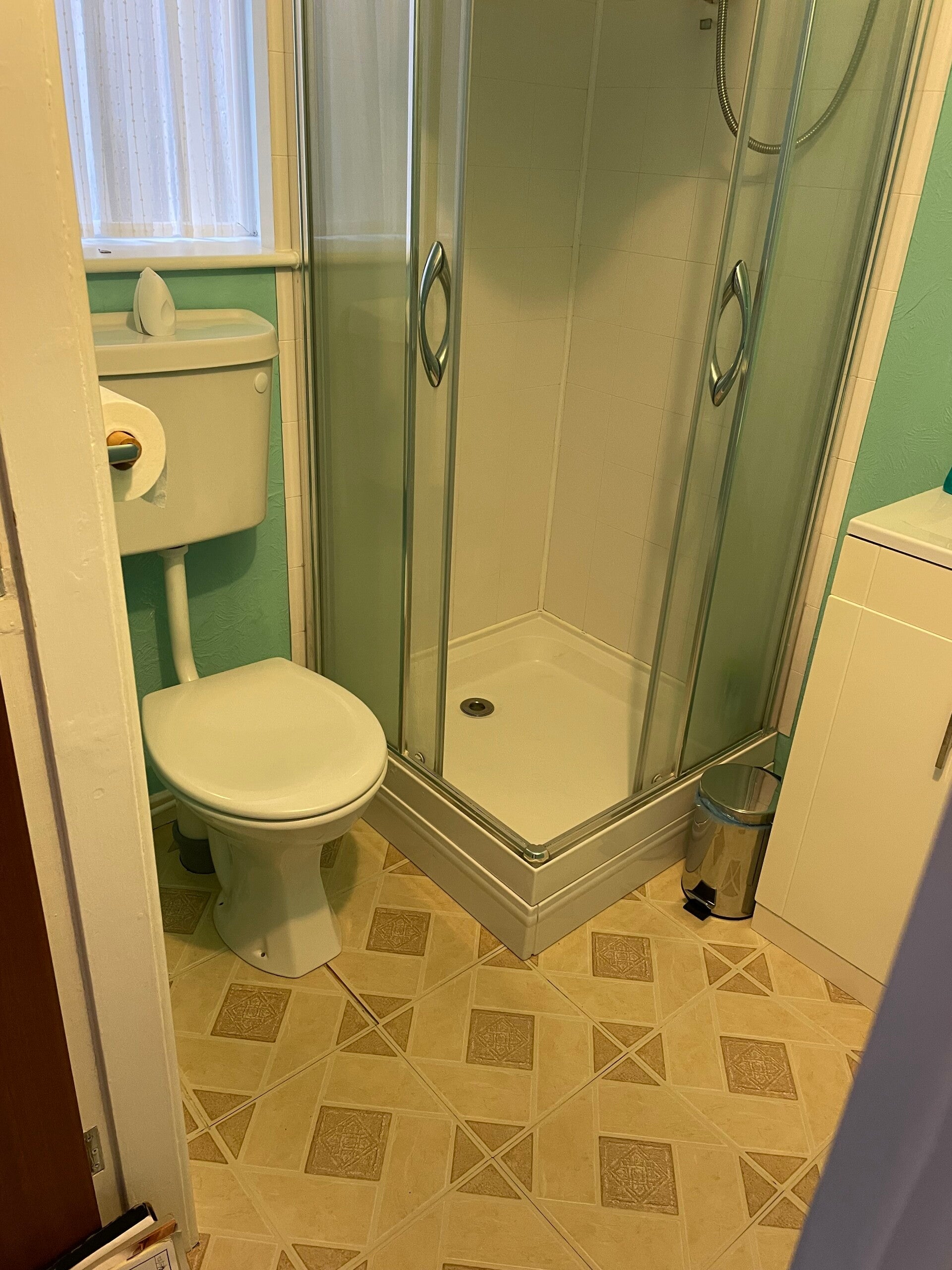 We offer showers with either 20-40mm trays which offer a cheaper alternative to a complete wet floor shown above with before and after pictures as well as walk-in baths shown on the left